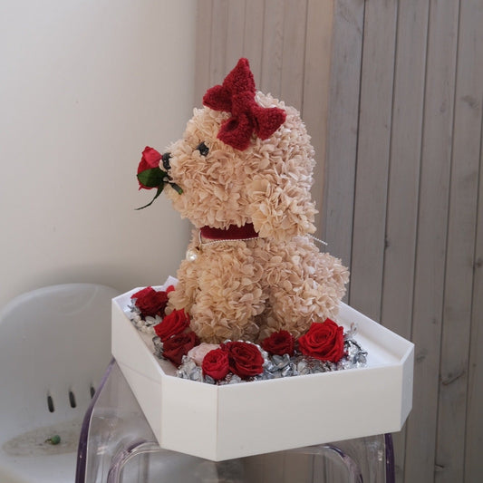 Floral Doggy | Brown Poodle (With Red Rose, Size L)