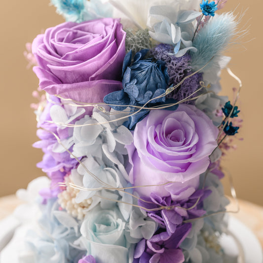 Blush Glow | Flower Display in Glass Dome (Purple Blue, with Lights)